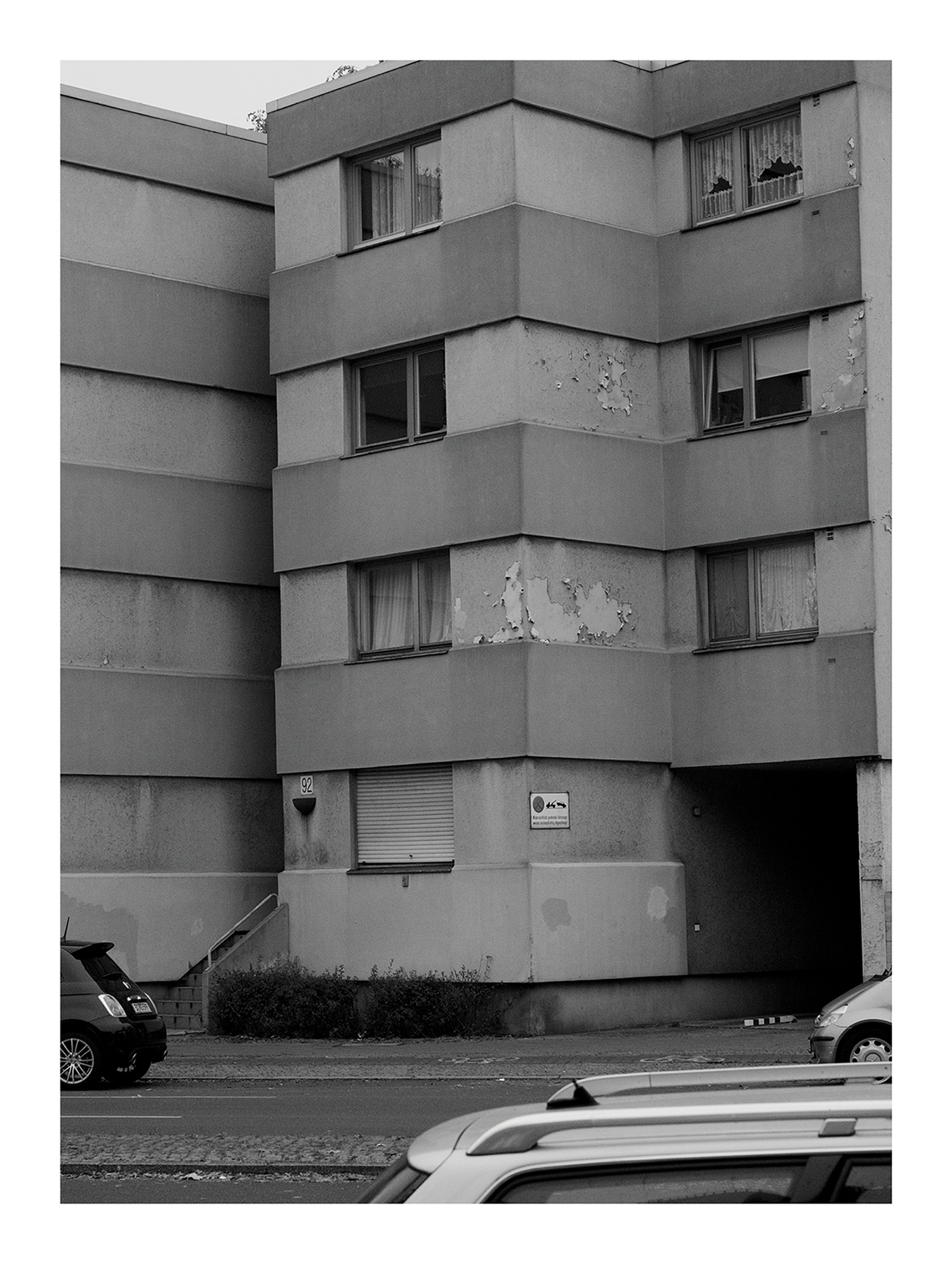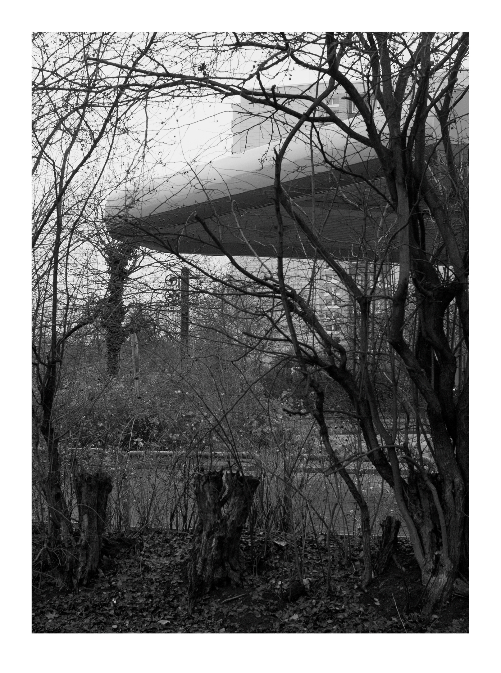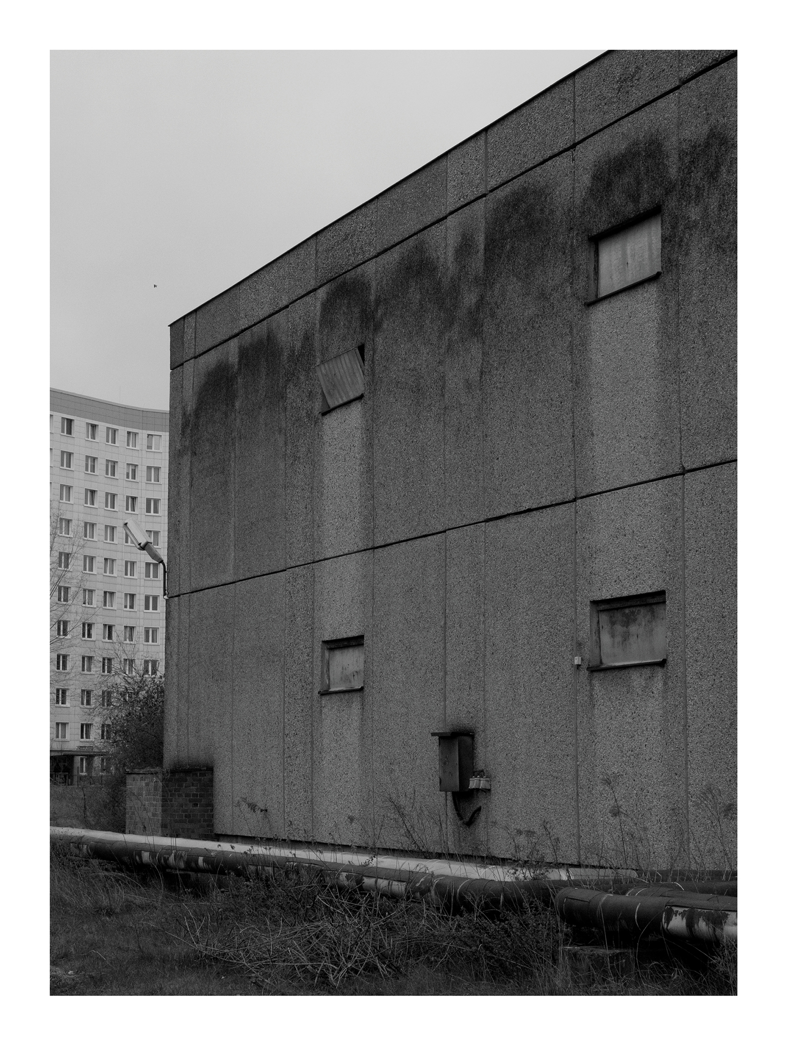 When I first traveled to Berlin, I sensed that the outward form of the city expressed its painful history in a tangible but repressed way. Each block or building seemed to be trying lock its stories behind walls. Berlin feels like a city of barriers to looking and knowing, but the barriers themselves seemed to tell a consistent story. I began to make frequent trips there between 2014 and 2018. I would just walk, allowing myself to get lost, and photographing moments that revealed what I just described. It was a subjective experience, but as I worked, I noticed formal and combinatory patterns repeating in the photos. I felt that in this way the city was teaching me something, and I followed the formal queues to see where they would lead.