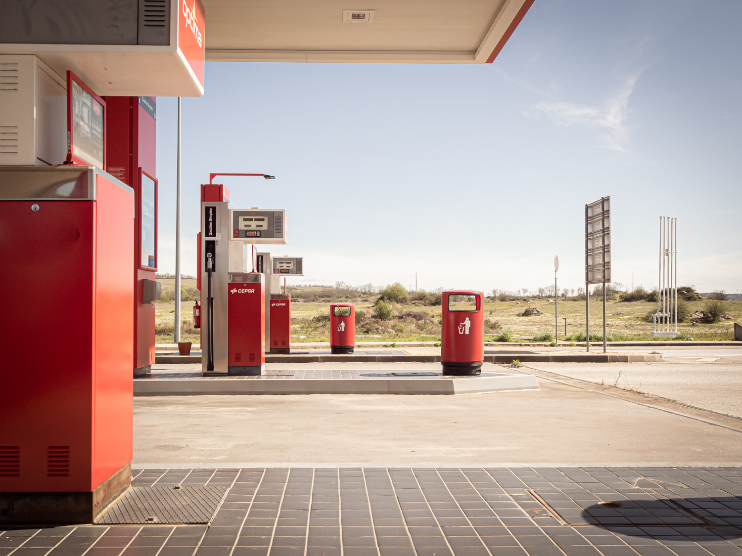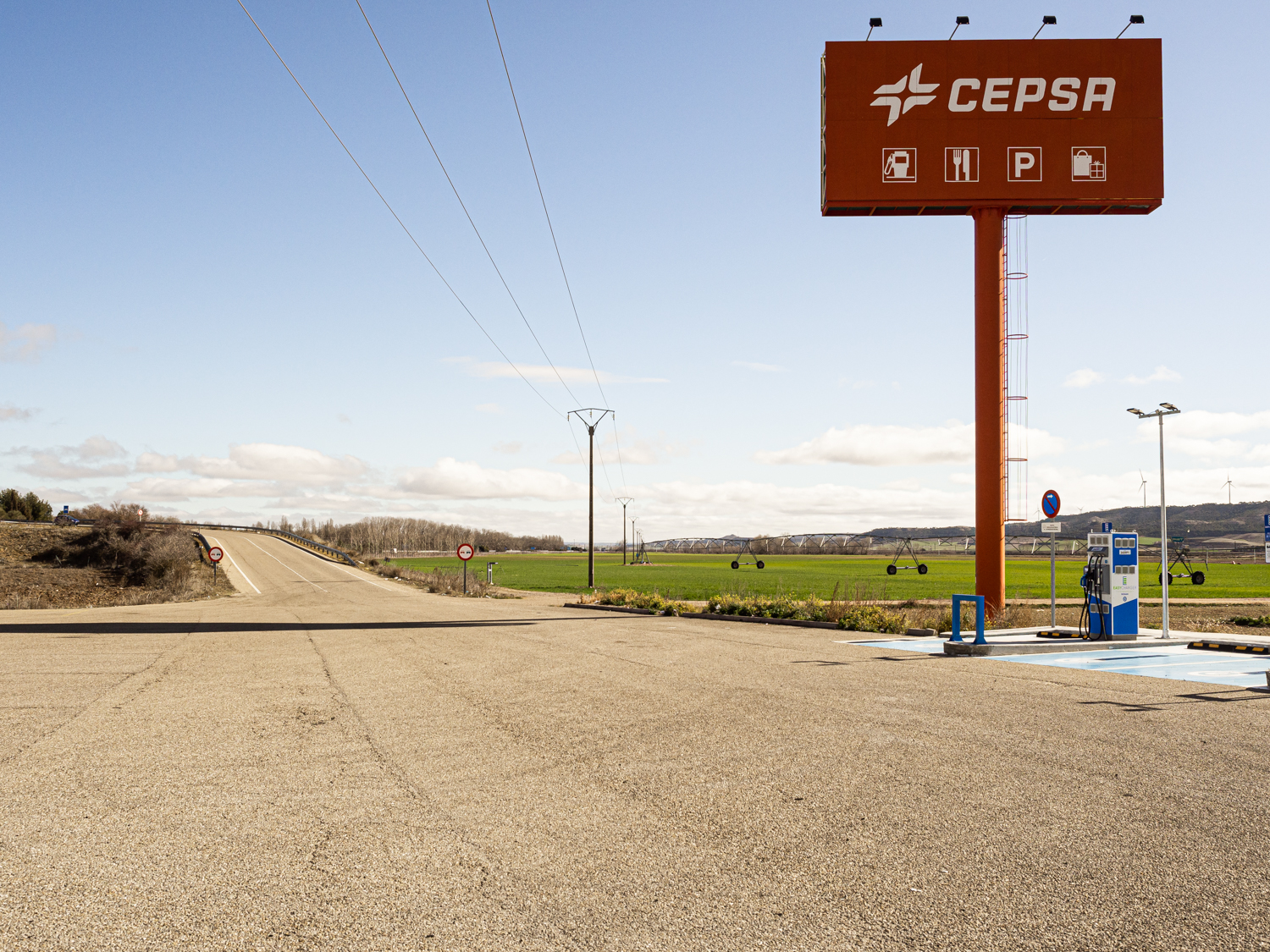 This series is the lived experience of a non-place. Non-places are those transitional spaces such as supermarkets, airports, train stations, motorway service areas, these purely functional places where people pass each other without communicating. They are quite dehumanized and you often feel a sense of solitude. I was driving through Castilla, a large agricultural plain sparsely inhabited, stopping regularly at gas stations. When I got out of the car, I felt a sense of emptiness, of being in the middle of nowhere, like in Bagdad Café or in Wenders or Jarmusch’s films. There was no visual limit between the space of the station and the landscape, my eye was completely free. I had a sensation of solitude, nonsense and even absurdity. I was totally disconnected and almost meditative. It was this state of mind that I photographed, and I also attached short prose poems. At the same time these places had a nostalgic feel, there were like a museum of the motorway. For me it was an exact picture of the end of our carbon-based civilization. It was like an anthropological vision by anticipation of our post-industrial world. I like feeling the past in the present, the collision of time and history.