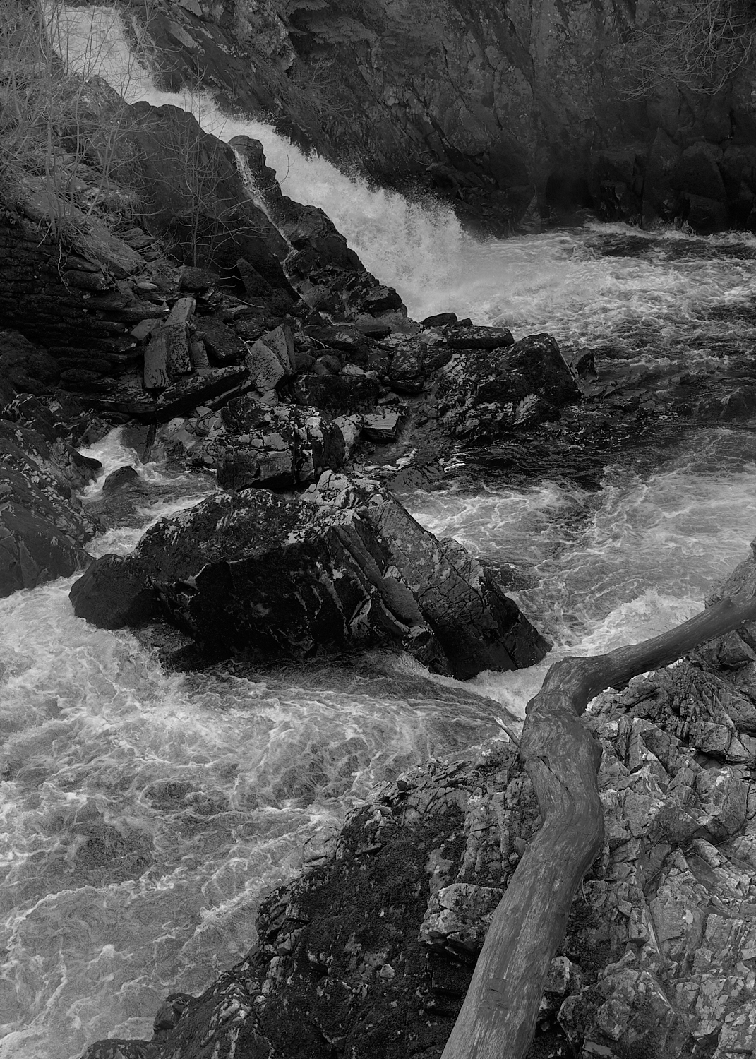 I do sometimes take images in colour, although for this project shooting in black and white was something that occurred naturally. I feel as though it conveys the mood in the images in a more pleasing way. There are a lot of images of rock and trees, and other subjects with a strong texture, and I think black and white accentuates this. It also works really nicely with dull light, overcast, rainy or foggy conditions which are exactly what I like to shoot in.