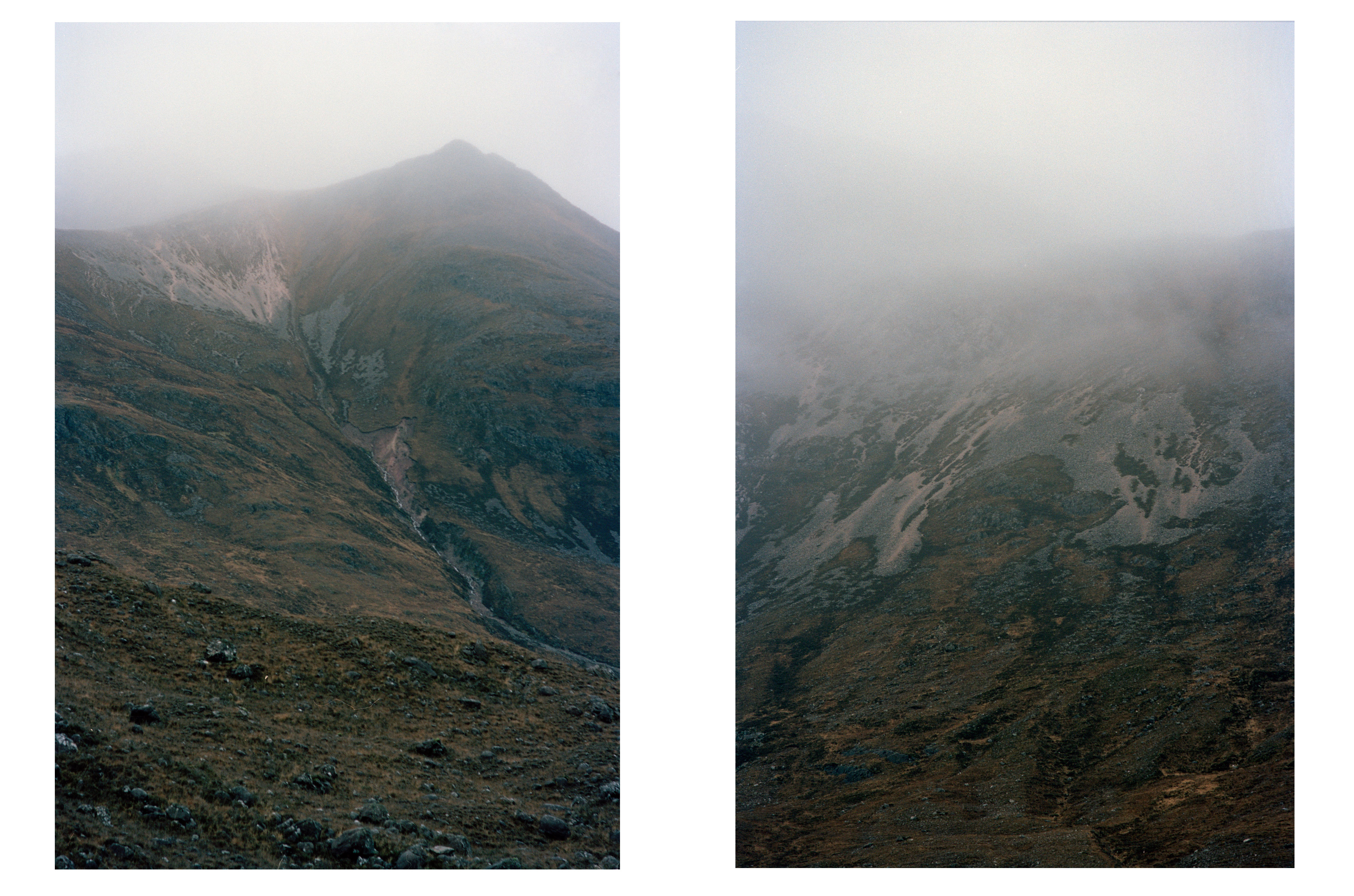 The photographs from The Mountain Becomes a Monstrous Place have all been made in the highlands of Scotland. But the exact location is not really so relevant. The project is as much as possible an attempt to explore the heightened sense of being one gets when connecting deeply with nature and the elements. It’s about being in the infinite moment and not being occupied with tracking distances on your phone or thinking about the peaks you wish to reach. It’s influenced by René Daumal’s allegorical mountaineering novel 'Mount Analogue’ and the writing of Nan Shepherd, particularly this quote: